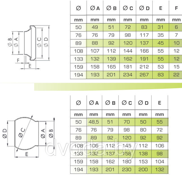 Диаметры: